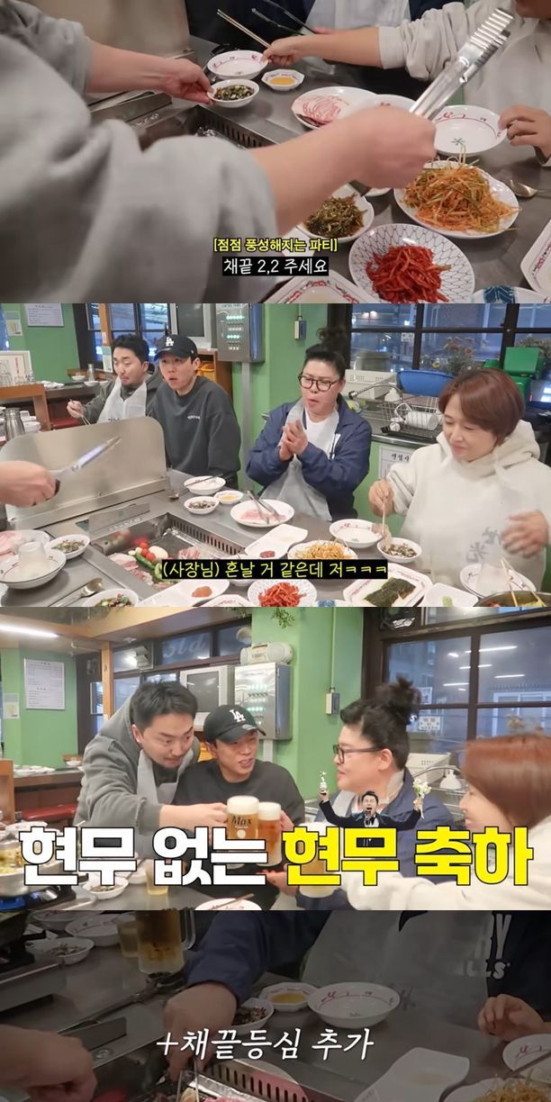 송은이도 "먹은 것처럼 냅둬"라며 동참했고, 이영자는 차돌박이 2인분을 더 주문하며 유병재, 양세형, 송은이와 함께 전현무 없는 전현무 회식을 즐겼다.