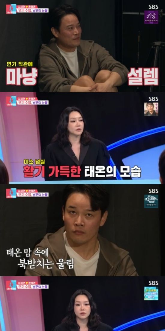 이후 윤태온은 절친 배우 김기무를 찾아 고민을 토로했다. 이어 윤태온은 연기학원을 운영하고 후배 배우들의 연기 수업을 하고 있는 김기무에게 청강을 해도 되겠냐고 묻고는 후배들의 연기를 지켜봤다.