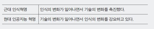 1부에서 가장 먼저 나누고 싶은 주제는 근대 문명을 촉발한 ‘인식혁명’이다. 인류의 역사를 바꿔온 두 축은 인식혁명과 기술발전이다. 근대문명은 인식혁명으로부터 시작됐고 현대문명은 기술발전이 사회변화를 촉진했다. 세계는 안팎의 변화로 인해 새로운 사회로 진입한다. ‘안’은 인식을 말하고 ‘밖’은 기술을 말하는데 방향을 달리하면서 변화를 일으킨다.