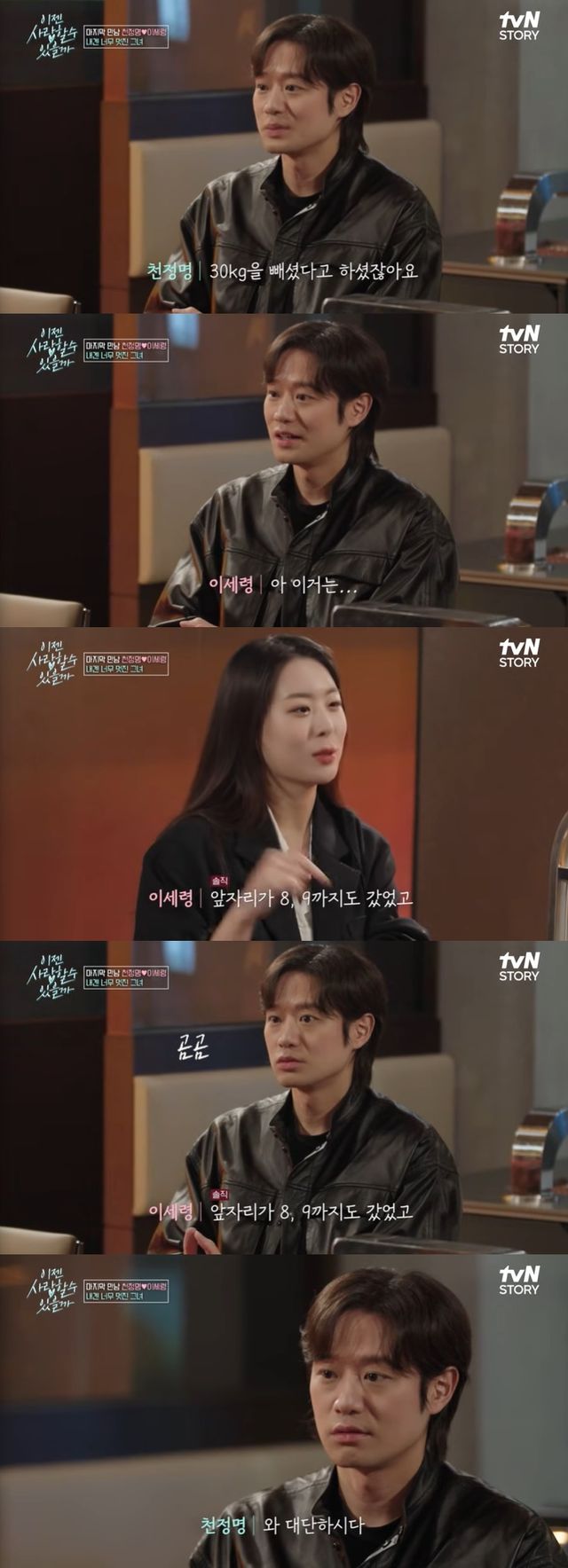 천정명은 "30kg을 빼셨다고 하셨는데 최고 몇 kg을 찍으신거냐"라고 묻자, 이세령은 "결과적으로 보면 앞자리가 8~9를 찍었다. 고도비만까지 갔었다"라고 말했다.