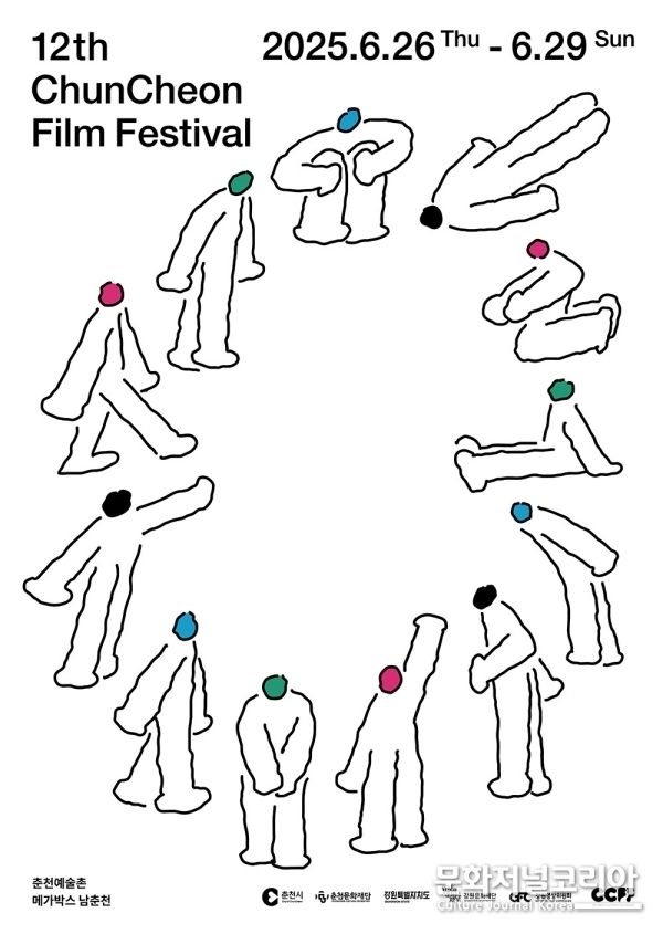 각기 다른 색의 얼굴을 지닌 열두 명의 인물들이 원형의 흐름 안에서 어우러지는 모습은 춘천영화제가 만들어내는 공동체적 감각을 보여준다. 공식 포스터는 동일한 구성을 바탕으로 흰색과 검정, 두 가지 배경으로 제작되었으며 각각 마당처럼 열린 분위기와 극장처럼 집중된 인상을 담아냈다.