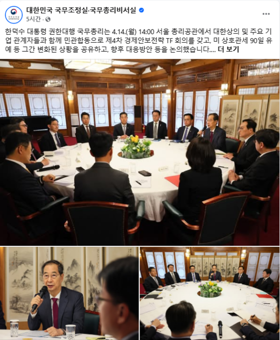 한편 이번 회의는 통상교섭본부장 방미 결과, 미 상호관세 90일 유예 및 스마트폰·컴퓨터 등 제외 발표 등 그간 변화된 상황을 공유하고, 향후 대응방안 등을 논의하기 위해 마련했다.
