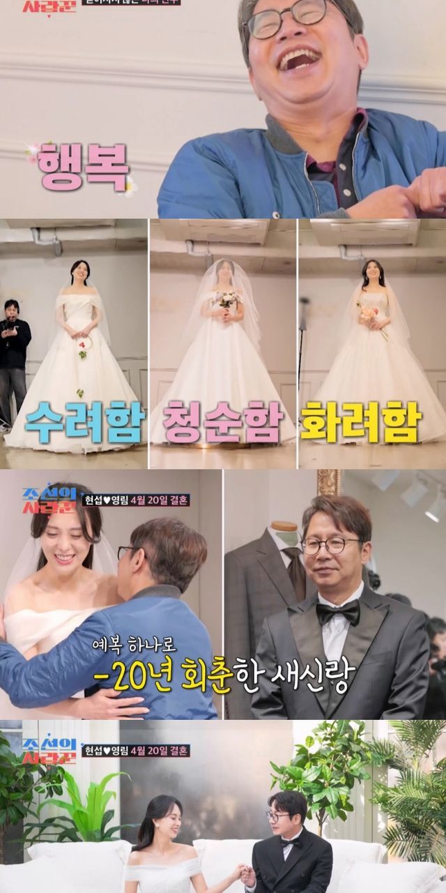한편, '조선의 사랑꾼'이 탄생시킬 '9번째 부부' 심현섭이 '예비 신부' 정영림의 웨딩드레스 피팅을 위해 웨딩숍으로 향했다. 심현섭은 "나도 이제 결혼하는구나. 그런 생각이 처음으로 드는 날이다. 역사적인 날"이라며 벅찬 감회를 전했다. 눈치 없이 드레스 카탈로그의 모델들을 보며 실없는 소리를 연발하던 그는 결국 영림의 차가운 눈초리를 돌려받았다. 그러나 막상 영림의 첫 번째 웨딩드레스가 공개되자 큰 함박웃음을 지으며 단숨에 달려 나가 기쁨을 온몸으로 표현했다. 두 번째 드레스까지 본 심현섭은 "꿈 속인가 싶기도 하다"며 '눈치 제로'의 발언들 속에 숨겨진 진심을 드러냈다.