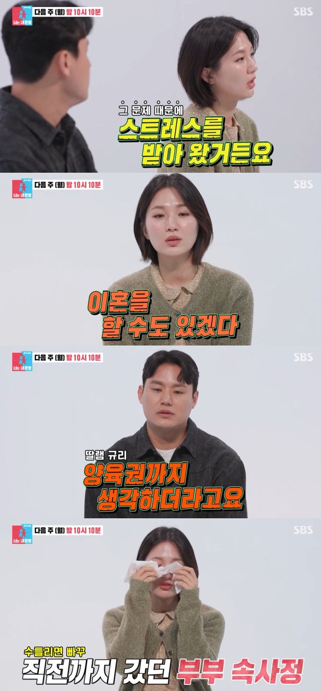 결혼 5년 차에 접어든 박승희는 "결혼 생활이 제 마음대로 잘 안 된다. 해결이 안 되면 '이혼을 할 수도 있겠다'고 생각했다. 항상 스트레스를 받아 왔다"며 속내를 털어놓았고, 남편은 "규리(딸)의 양육권까지 생각하더라"며 그간의 갈등을 드러냈다.