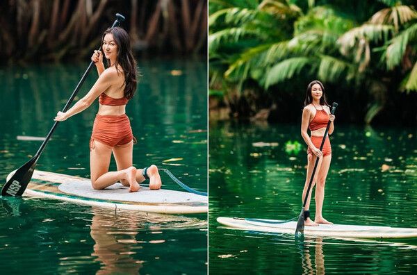김옥빈이 탄 패들보드는 보드 위에 선 채로 노를 저어 앞으로 나아가는 수상 레저 스포츠다. 패들보드에 오른 사람은 물 위에서 균형을 잡아야 하므로 코어와 하체 힘을 기를 수 있다. 또 노를 저으면서 어깨, 팔 근육 등을 단련할 수 있는 것으로도 알려졌다. 최근에는 패들보드에 오른 채로 요가하는 '패들보드 서핑 요가'가 유행하기도 했다.