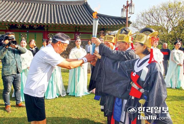 이어 개막 당일인 18일 오후 5시 개막식이 열리는 애향운동장으로 출발, 주경기장에서 열전 3일간 불을 밝히게 된다.