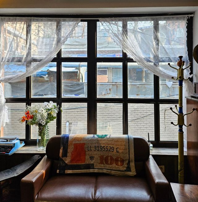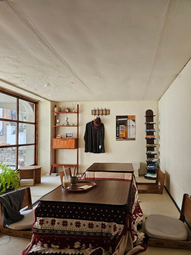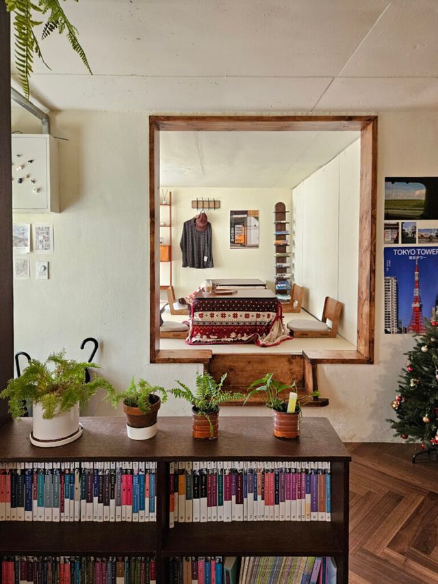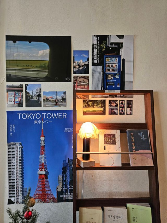 이름부터 도쿄가 떠오르는 이곳은 우드톤 가구와 따뜻한 조명, 다다미로 꾸며진 좌식 공간이 어우러져 마치 료칸에 온 듯한 아늑함을 자아낸다. 벽에는 풍경 사진이 걸려 있고, 책장 위에는 오래된 라디오가, 선반에는 만화책이 가지런히 놓여 있다. 공간 전체에 정갈하고 조용한 분위기가 스며 있어, 감성을 자연스럽게 자극하는 것이 이곳의 매력.