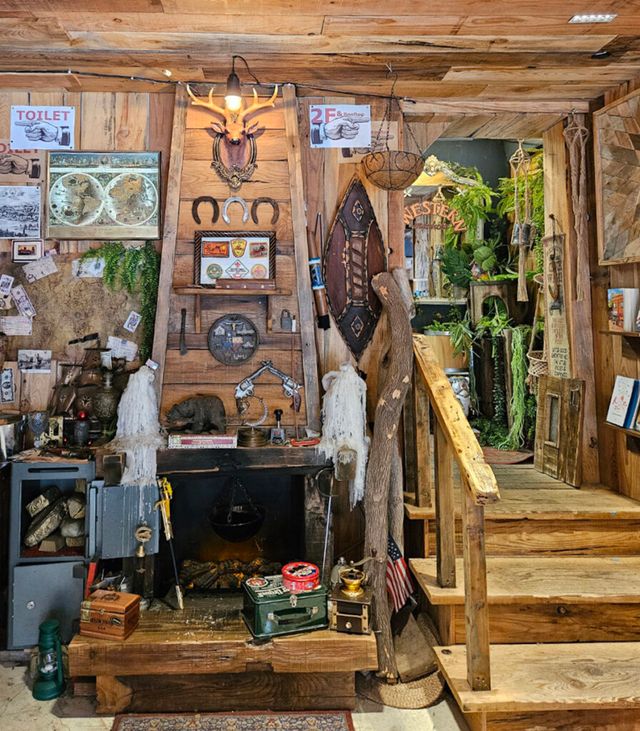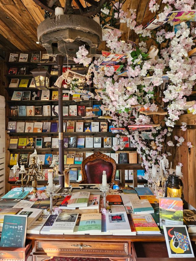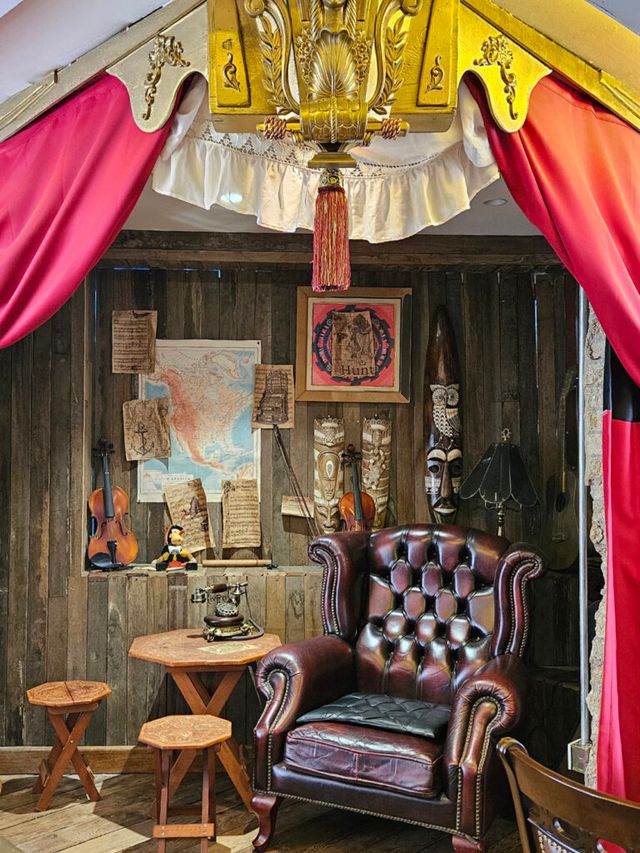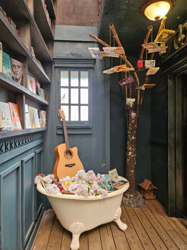 2층으로 올라가면 빈티지 인테리어가 펼쳐진다. 천장까지 닿는 책장과 앤티크한 나침반, 세계지도, 그리고 곳곳에 놓인 그림들이 시선을 사로잡는다.
