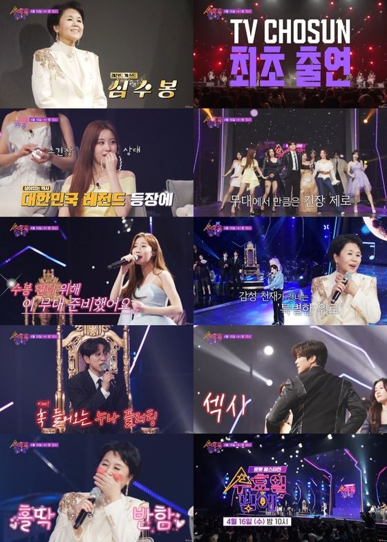 한편, TV CHOSUN신규 예능 프로그램'트롯 올스타전:수요일 밤에'는4월16일 수요일 밤10시 첫 방송된다.