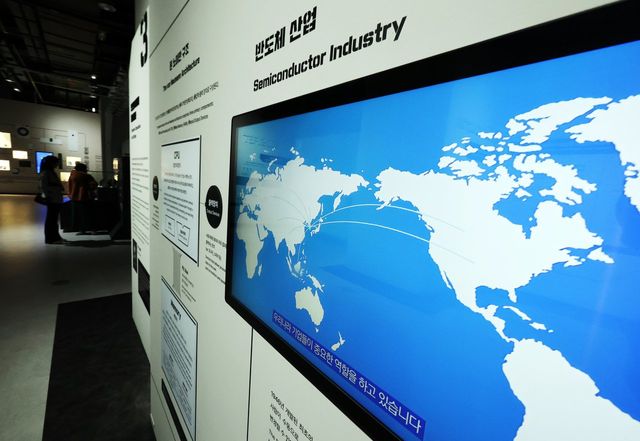 15일 경기 과천시 과천국립과학관 미래상상 SF관에서 관람객들이 반도체 관련 전시품을 살펴보고 있다. 정부는 이날 경제관계장관회의 겸 산업경쟁력강화 관계장관회의에서 필수 추가경정예산(추경)안과 관련해 "반도체 산업에 대한 지원을 33조 원으로 대폭 확대하고, 재정도 2026년까지 4조 원 이상 투입하겠다"고 밝혔다. 2025.4.15/뉴스1