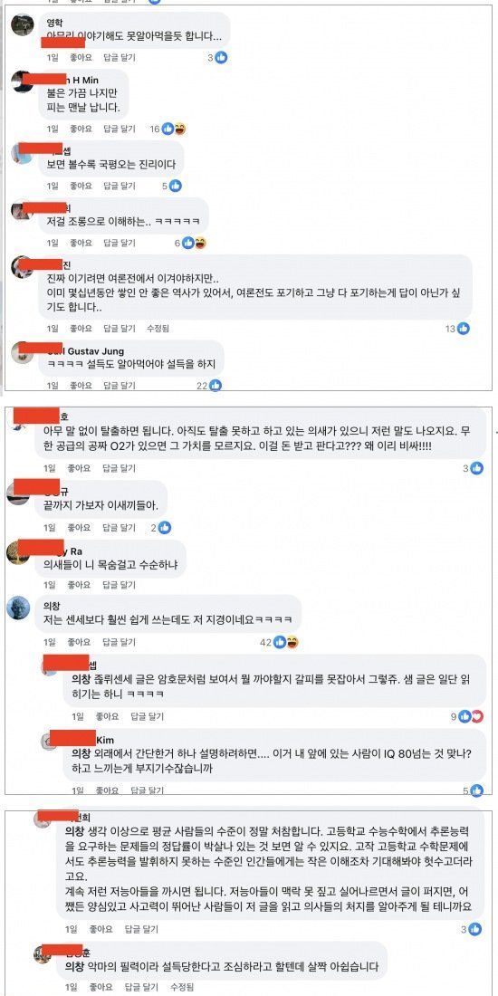 최근 대형 화재 상황에서 진압 중 소방관이 사망했음에도, "소방관은 불 못 끄고 자는데도 칭찬받네ㅋㅋ"류의 사회성 박살난 의사들의 주류정서가 알려져 여론이 좋지 않았는데, 해당 논란에 대한 의사들의 반응은 더 처참해서 충격적임