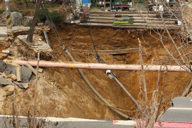 노후 하수관은 땅 꺼짐(싱크홀) 주범으로 꼽힌다. 하수관의 구멍과 갈라진 틈 사이로 새어 나온 물이 땅속의 흙을 쓸어가면서 빈 공간이 생겨 땅이 내려앉는 원리다.