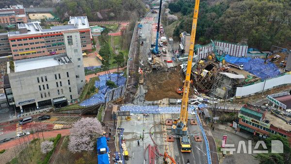 이번 사고는 지난 11일 오후 3시13분 포스코이앤씨가 시공하는 신안산선 복선전철 5-2공구 지하터널 공사 현장과 상부 도로 50m가량이 붕괴하며 발생했다.