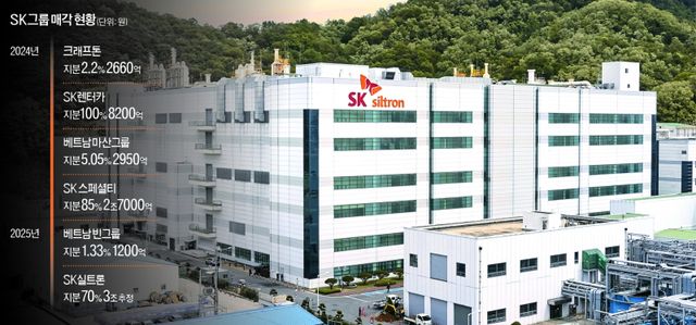 SK는 SK스페셜티에 이어 SK실트론까지 반도체 계열사들을 정리하는 수순을 밟고 있다. SK는 지난해 특수가스를 생산하는 100% 자회사 SK스페셜티 지분 85%를 사모펀드 한앤컴퍼니에 매각해 약 2조7000억원을 확보했다.