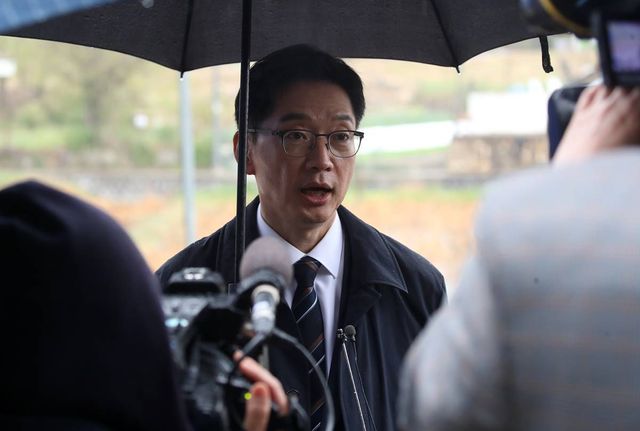 대선 출마를 선언한 더불어민주당 김경수 전 경남지사가 지난 14일 오후 경남 양산시 하북면 평산마을 문재인 전 대통령 사저를 예방한 뒤 취재진 질문에 답하고 있다 / 뉴스1