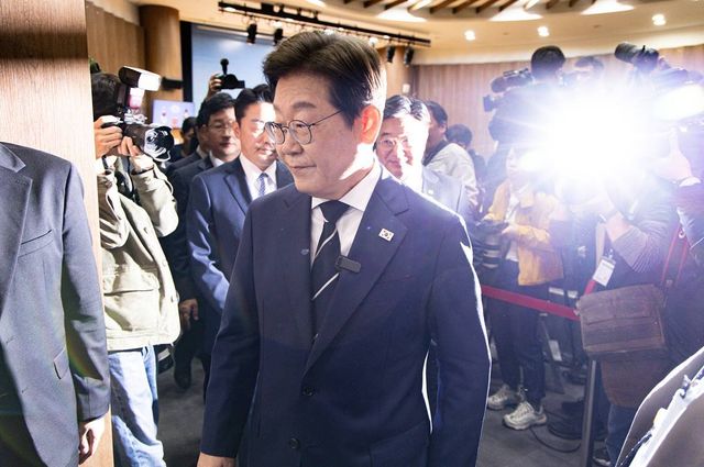제21대 대통령선거에 출마를 선언한 이재명 더불어민주당 전 대표가 지난 11일 오전 서울 여의도 국회 소통관에서 기자회견을 열고 비전 및 캠프 인선을 발표를 마친 후 기자회견장을 나서고 있다 / 뉴스1