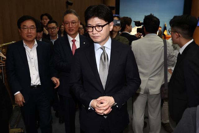 국민의힘 대선 경선에 나선 한동훈 전 대표가 지난 15일 서울 여의도 국회 소통관에서 정책 비전 발표를 마치고 나서고 있다 / 뉴스1