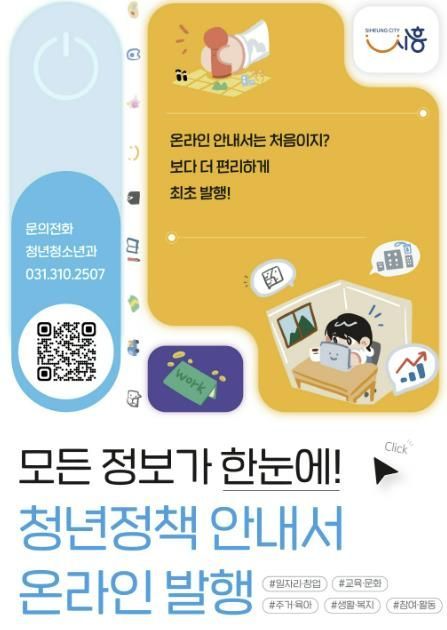 시는 그동안 청년정책 안내서를 종이 책자로 제작해 관내 동 행정복지센터, 도서관, 시흥시청렴공간(청년협업마을, 청년스테이션) 등에서 배포해 왔다. 올해는 시흥시청렴공간에서 종이 책자를 배포하고, 더 많은 청년이 시간과 장소에 구애받지 않고 활용할 수 있도록 시흥시 청년정책 드라이브(블로그)와 연계한 온라인 전용 콘텐츠를 추가로 제작해 청년들의 정책 접근성을 높였다.