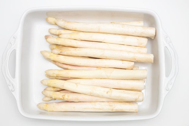 화이트 아스파라거스는 100g당 20칼로리로 지방이 전혀 없다. 탄수화물 3g, 단백질 2g, 식이섬유 2g이 들어 있다. 식이섬유가 많아 소화 건강에 도움이 되며, 배변 활동을 원활하게 도와준다.