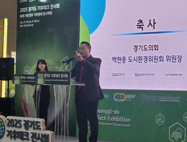 [와이뉴스] 경기도의회 도시환경위원회 백현종 위원장(국민의힘, 구리1)은 16일 고양 킨텍스 제2전시장에서 열린 『2025년 경기도 기후테크 지정서 수여식』에 참석해 유망 기후테크 기업에 대한 지정서와 현판을 수여했다.