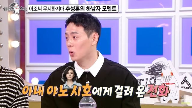 김구라는 야노 시호가 어떤 것 때문에 잔소리를 하냐고 물었고, 추성훈은 "제가 일본에서 한국으로 오지 않나. 그 때 스위치를 안 끄고 나온 거라든지, 쓰레기도 왜 거기 두냐고 국제 전화까지 한다. 그럴 수도 있지. 급하게 나가는데"라고 불평을 털어놨다.