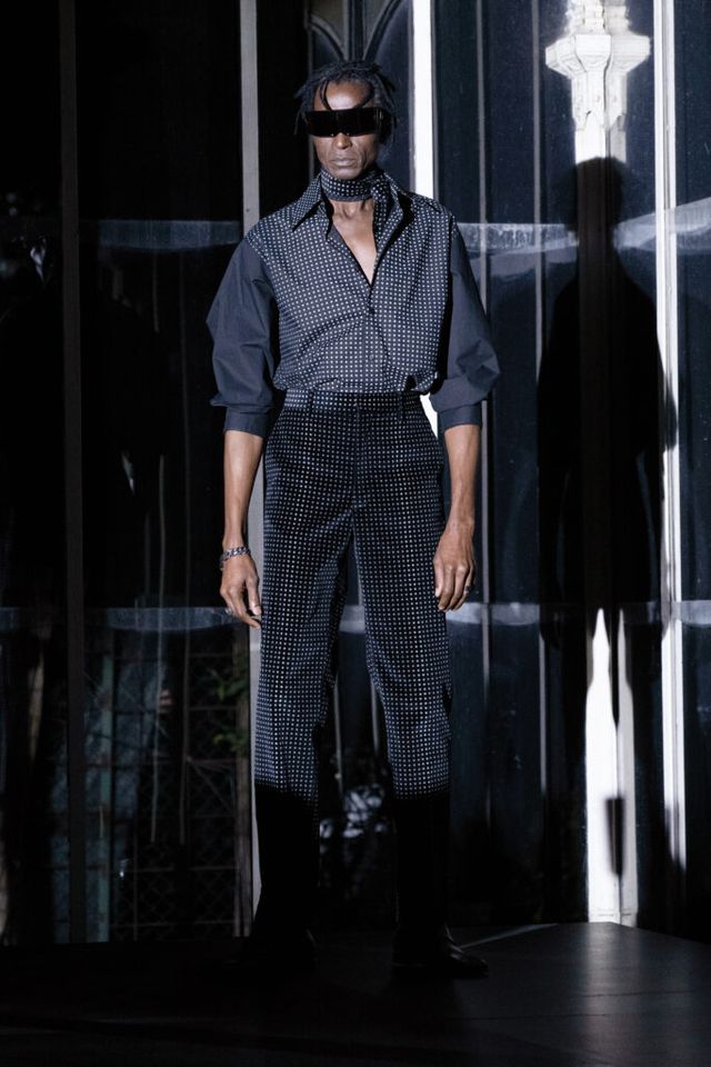 첫 번째 게스트 디자이너이자 19년 만에 피티 워모에 컴백한 ‘MM6 메종마르지엘라’. 전통적인 남성성을 MM6만의 방식으로 집중하고, 제품 자체에 직관적으로 접근했다. 여기에 하우스 특유의 도발적이고 실험적인 디테일을 가미한 것. 실키하거나 강렬한 유광 레더 소재부터 프린지, 빛바랜 듯한 타이다잉, 영화 <매트릭스>를 연상시키는 고글형 선글라스까지. 피티 워모 멋쟁이들의 옷장을 완전히 뒤바꿔놓을 수 있을 만큼 재치 있는 룩으로 가득했다. 쇼가 끝난 후 모델들이 런웨이 아래로 내려와 관객과 함께 애프터파티를 즐기며 흥을 고조시켰다.