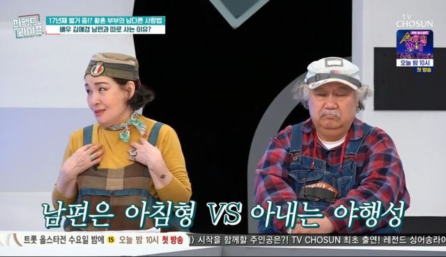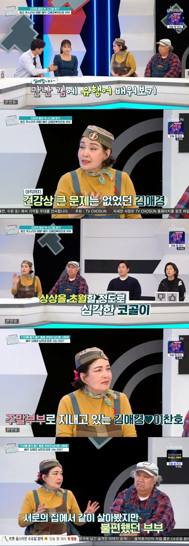 16일 방송된 TV조선 '퍼펙트 라이프'(이하 '퍼라')에는 '원조 콧소리 여왕' 배우 김애경과 그의 남편 이찬호가 동반 출연했다.