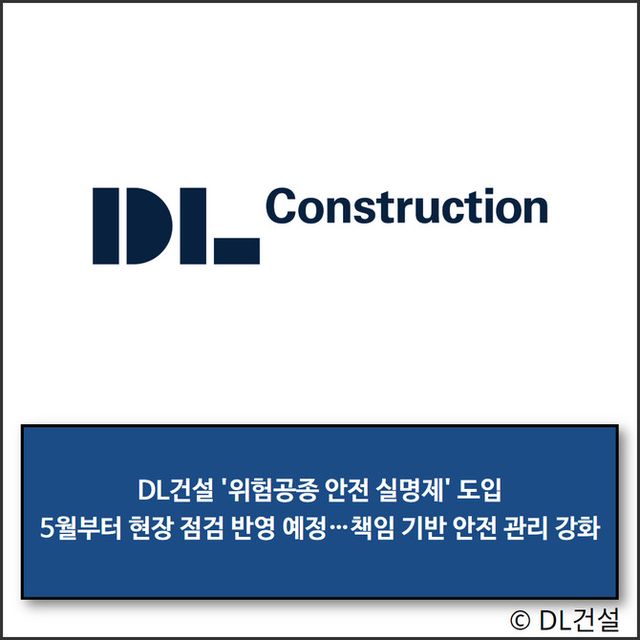 '위험공종 안전 실명제'는 국토교통부 등 관계부처의 추락사고 예방 정책 일환으로, 시공사의 현장 책임을 명확히 하기 위한 제도다. DL건설은 위 제도를 전 현장에서 즉시 시행했으며, 2025년 5월부터는 현장 필드 점검에 반영할 예정이다. 또한 2분기부터는 분기제도 평가 항목으로 적용 후, 진단현장 선정 및 재발방지 대책 도출에도 반영할 예정이다.