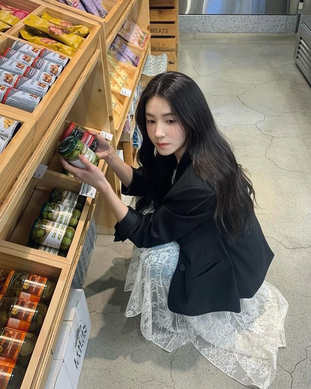화이트 컬러의 롱 치마를 보다 색다르게 연출하고 싶다면? 주지아의 룩을 참고해 청바지 위에 레이스 스커트를 ‘쓱’ 둘러볼 것. 블랙 자켓과 청바지로 완성한 심플한 데일리 룩에 우아한 포인트가 되어주니, 속이 은은하게 비치는 레이스 소재의 화이트 롱 치마를 레이어드한다면 이번 봄엔 더욱 다양한 스타일을 즐길 수 있을 듯.