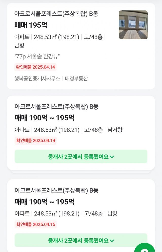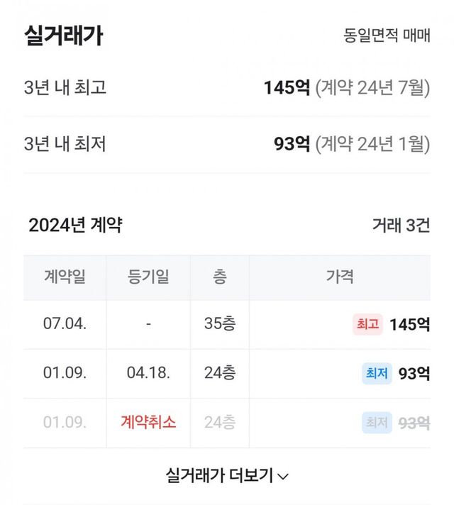 2년전에 95억에 거래 되었는데 2년 사이에 100억이 더 오름.. 물론 호가이긴 한데 가장 최근 실거래가가 작년에 145억에 거래 됨...