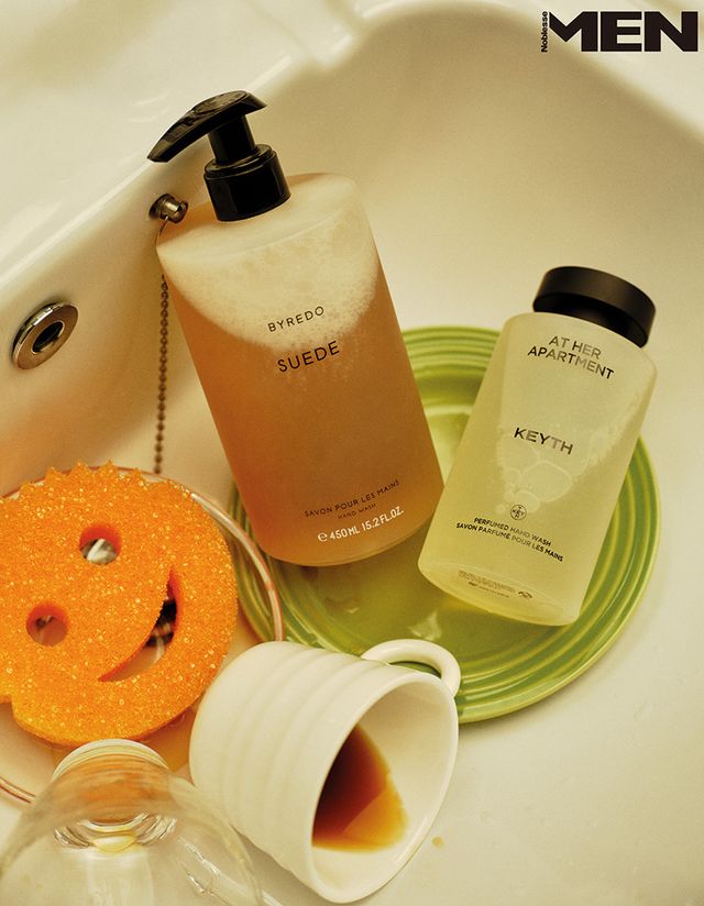 달콤한 서양배와 베르가모트, 머스크가 어우러진 스웨이드 핸드 워시. 마치 향수를 두른 듯 손끝에 은은한 잔향이 오래도록 남는다. Byredo, 싱그러운 레몬과 베르가모트가 시더우드의 따뜻함과 조화를 이루는 앳 허 아파트먼트 핸드 워시 Keyth.