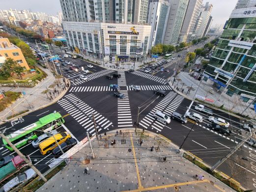 시는 지난해 도심 상업지구, 대중교통 이용이 집중되는 지역 등을 중심으로 니은(ㄴ)·디귿(ㄷ)자 형태의 횡단보도를 미음(ㅁ) 또는 엑스(X) 자 모양으로 변경하는 등 총 11곳의 횡단보도를 개선 및 신설했다.