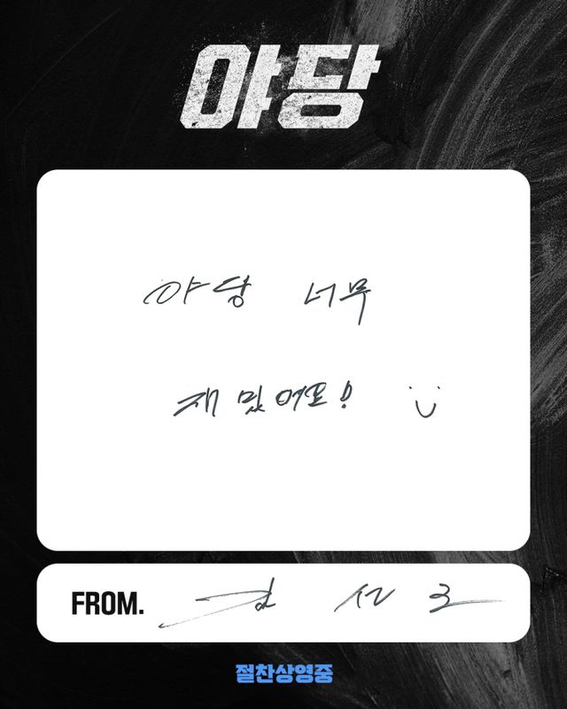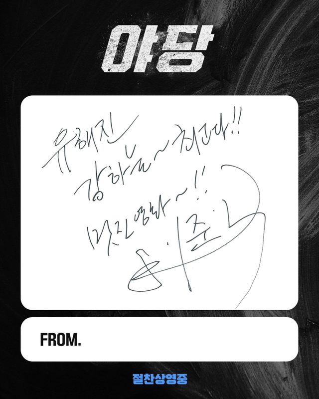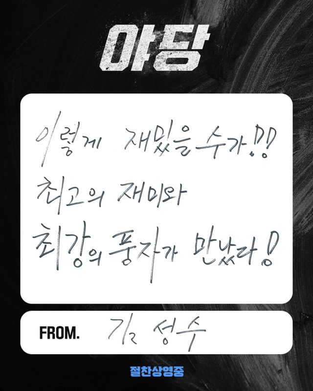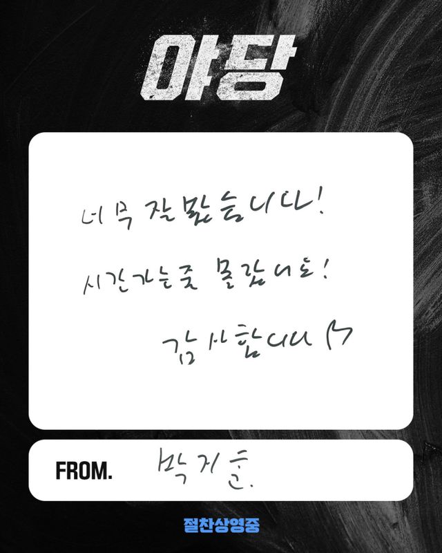 ‘야당’에 셀럽들도 호평을 보내고 있다. 17일 배급사 플러스엠 엔터테인먼트는 친필 감상평을 공개했다.