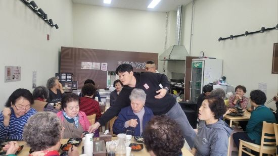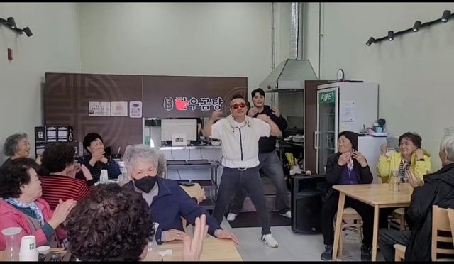두 가수는 재능기부로 참여해 직접 서빙에 나섰고, 식사 전 스트레칭과 신곡 ‘건강박수’ 공연으로 현장의 분위기를 띄우며 웃음과 활력을 전했다.