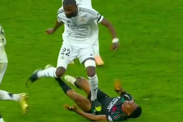 또 다른 논란은 후반 중반 발생했다. 레알 수비수 안토니오 뤼디거가 아스널 유망주 마일스 루이스-스켈리와의 경합 도중 그의 복부를 짓밟는 장면이 생중계에 잡혔다. 하지만 주심은 이를 제지하지 않았고, VAR에서도 별다른 판정이 나오지 않았다.