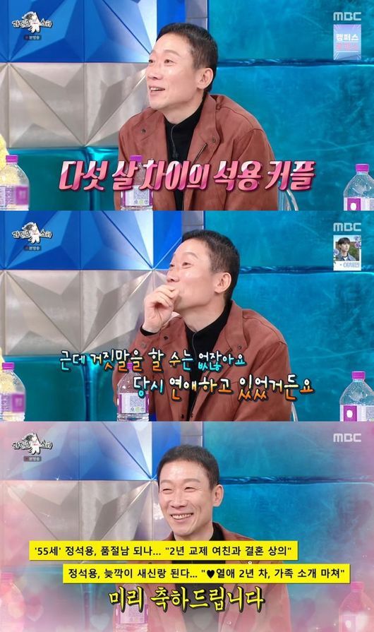 특히 "사귄 지는 2년 반 됐다"고 밝힌 정석용은 '결혼 이야기가 슬슬 나오겠다'는 MC 김구라의 질문에 "이야기를 나누고 있다"고 답하며 조만간 결혼식 날짜를 잡을 계획임을 시사했다. 이에 김구라는 "축하드린다"며 정석용의 결혼을 축복했다.