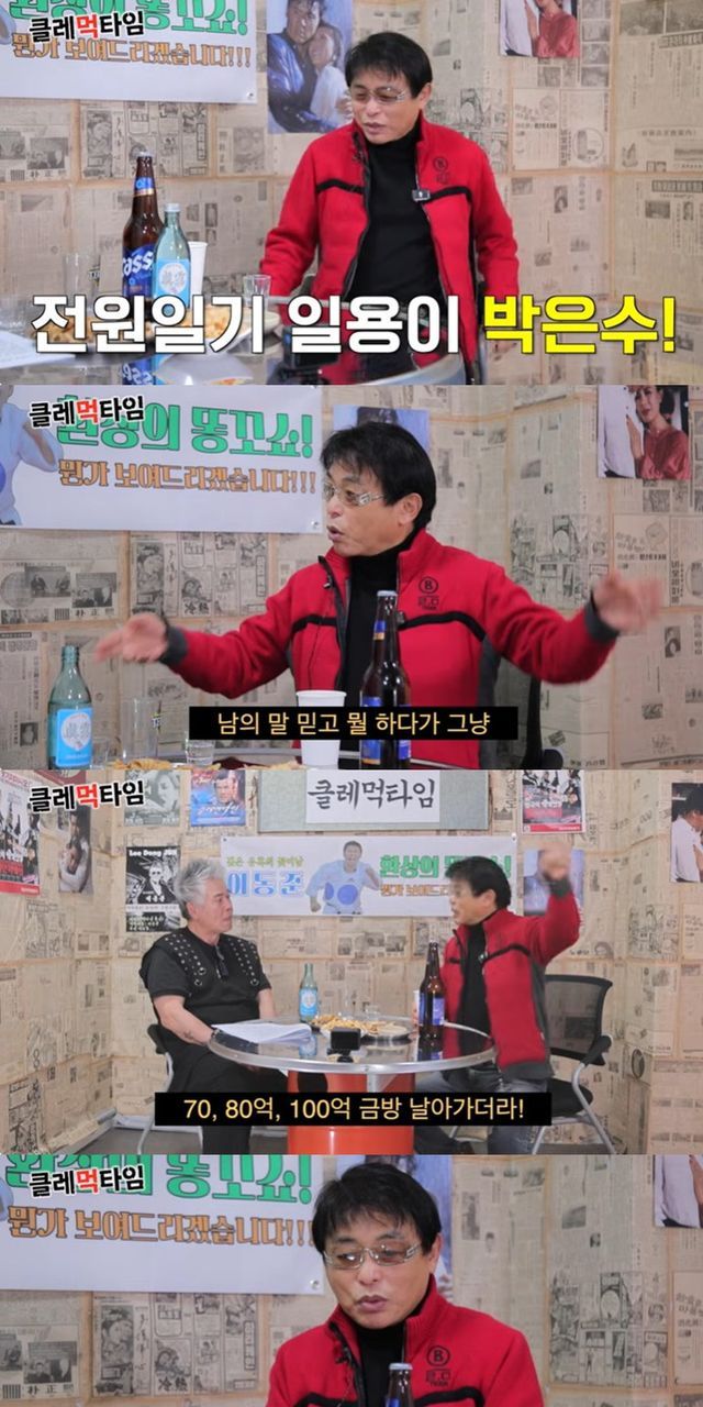 이동준이 "갑자기 어떤 슬럼프에 빠졌다"고 묻자 박은수는 "귀가 얇아서 남의 말 믿고 뭐 하다가 70, 80억, 100억 금방 날아가더라"고 답했다.