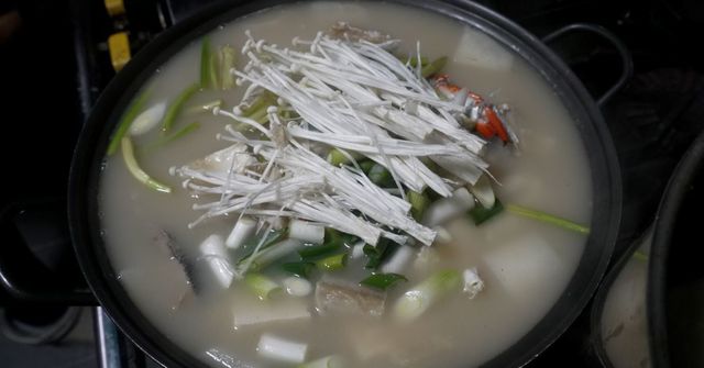 말린 농어와 각종 해산물을 넣고 뽀얗게 끓여낸 대이작도의 별식, 농어건탕까지!