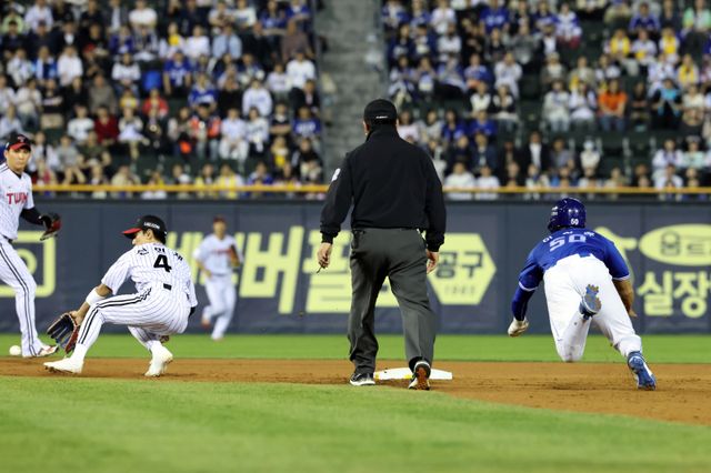 2회까지 상대 선발 송승기에게 한 개의 안타도 때려내지 못하고 있던 삼성 타선은 3회 초, 선두타자 심재훈의 안타로 물꼬가 텄다. 우타자 심재훈은 송승기의 공을 강하게 당겨쳐 3루 방면으로 강습 타구를 보냈다. 타구는 3루수 문보경의 다이빙캐치에 잡혔지만 심재훈은 1루를 향해 전력질주했고, 결국 3루수의 송구 실책으로 연결하며 2루까지 안착했다. 신인이 타선에 활력을 불어 넣은 것이다.