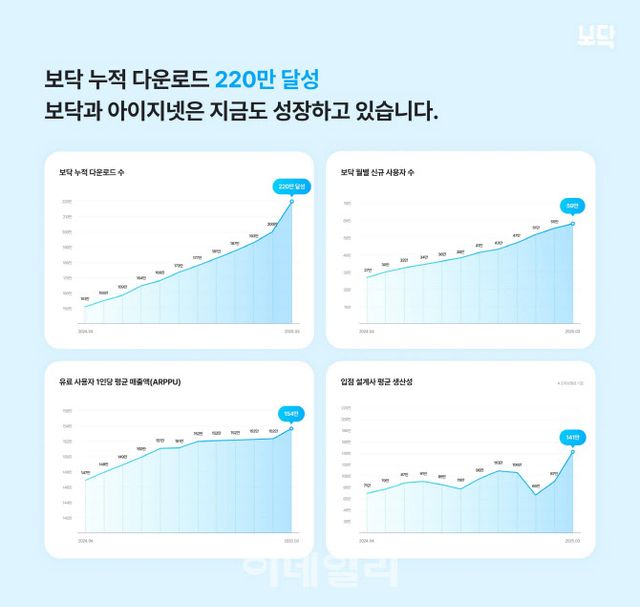 주목할 만한 부분은 입점 설계사의 월평균 생산성이 1년 전보다 2배 가까이 높아져 140만원대를 기록하고 있다는 점이다. 아이지넷 측은 “이는 업계 최상위 수준으로, 보닥에서 제공하는 보험 진단 결과와 상담 지원 시스템이 설계사의 효율을 개선해온 결과”라고 설명했다.