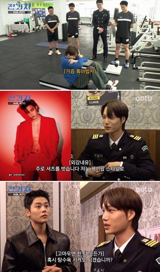 마지막으로 카이는 6·25 전쟁사에 대한 군사학 강의를 청강하며 교수님의 질문마다 손을 들며 의욕적인 발표를 이어나가 교수님의 감탄과 칭찬을 자아냈다. 특히 카이는 학생들의 답변 완성도를 점수로 평해 주는 교수님만의 강의 스타일에 꽂혀, 열정적으로 강의에 임하면서도 발표를 할 때마다 "제 답변에 대한 점수는 어떻게 됩니까?"라고 묻는 등 남다른 '점수 집착' 면모로 끝까지 풍성한 웃음 폭탄을 선사했다. 아울러 카이는 ROTC 체험 초반 대령 신분인 학군단장과의 만남에서 잔뜩 긴장해 정자세를 유지하고 신고식에서도 멘트 실수를 했던 것과 달리, 어느새 자연스럽고 매끄럽게 관등성명을 이어가며 ROTC에 완벽 적응한 모습을 드러내 보는 이들을 흐뭇하게 했다.