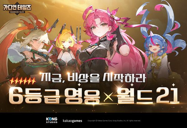 카카오게임즈(대표 한상우)는 18일, 미국 개발사 콩 스튜디오(대표 원, Won)가 개발한 모바일 RPG ‘가디언 테일즈’에 신규 월드 및 성장 시스템 등 주요 업데이트를 진행했다고 밝혔다.