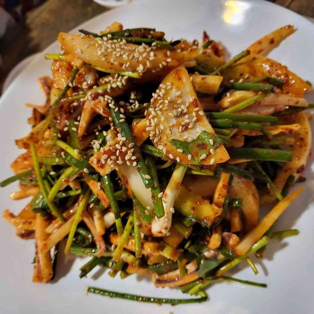 대표 메뉴는 파 불고기. 간장 베이스의 달짝지근하면서 짭짤한 양념이 일품인 파 불고기는 그리들 형태의 냄비에 나오는데 가운데 부분에 마늘을 넣고 고기 기름에 튀기듯 구워 함께 먹는 게 국룰이니 직접 해보자. 상추에 고기와 마늘, 고추 등 취향대로 올려 쌈을 싸 먹어도 좋다. 밑반찬으로 나오는 김치는 그냥 먹어도 맛있지만 구워서 함께 먹거나 공깃밥을 시켜 파 불고기와 함께 볶아먹어도 좋다.