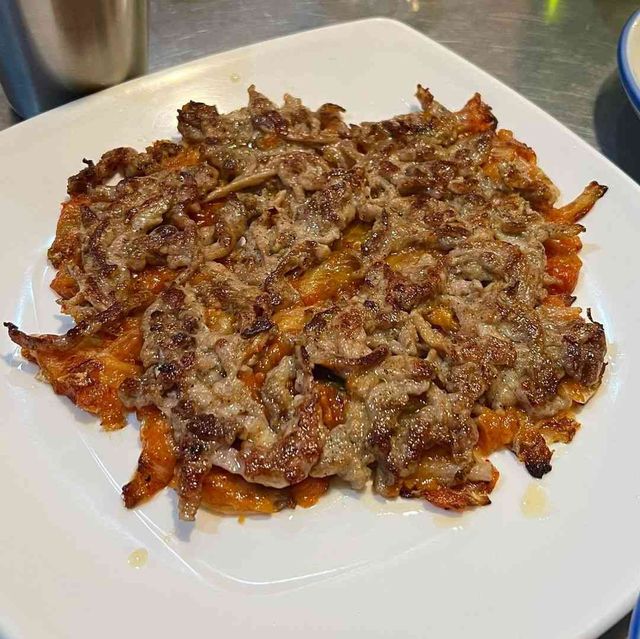 다진 돼지고기를 위에 올려 부쳐낸 돼지김치전이 이곳의 가장 대표적인 메뉴다. 14시간 동안 핏물을 뺀 돼지고기를 사장님이 손수 다져 생강, 마늘, 양파, 후추 등을 넣어 간을 하고 잡내를 제거해 김치전과 함께 부쳐낸다. 살짝 시큼한 김치전과 적당히 간이 된 고기와의 조합이 술안주로 제격이다.