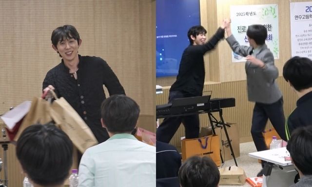 공개된 사진 속에는 코드쿤스트가 ‘코 교수’로 후배들 앞에 선 모습이 포착됐다. 코드쿤스트의 등장에 깜짝 놀란 후배들은 환호성과 박수를 터트리고, 코드쿤스트는 후배들의 에너지를 만끽한다.