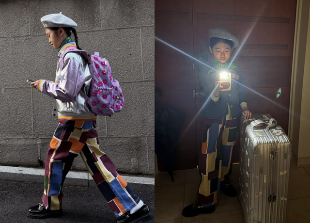 특히 컬러풀한 조각 패턴이 인상적인 팬츠에 실버 재킷, 꽃무늬 보라 가방을 맨 ‘투머치’ 아이템을 완벽히 소화해내며 패션지 못지않은 코디실력을 뽐냈다.
