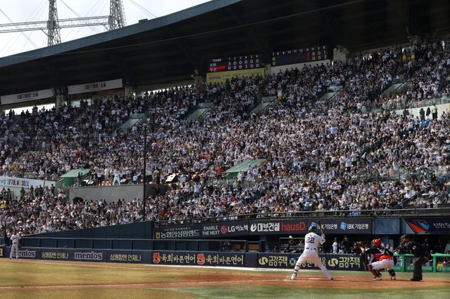 2025시즌 KBO리그에서 주중(화∼금요일) 잠실 경기가 모두 '만원 사례'가 된 건 지난 3월 25일∼28일 이후 이번 주가 두 번째다. 당시 25~27일엔 한화 이글스와 LG의 경기가 있었고, 28일엔 삼성과 두산이 경기를 펼쳤다.