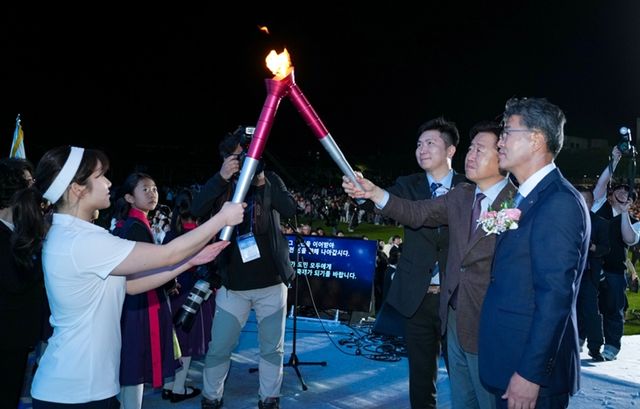 또 이날 개회식에는 지난달 취임한 유승민 대한체육회장이 사상 처음으로 참석, 오영훈 지사와 함께 성화 점화에 참여하며 2026년 제주에서 열리는 제107회 전국체육대회의 성공적 개최를 기원했다.