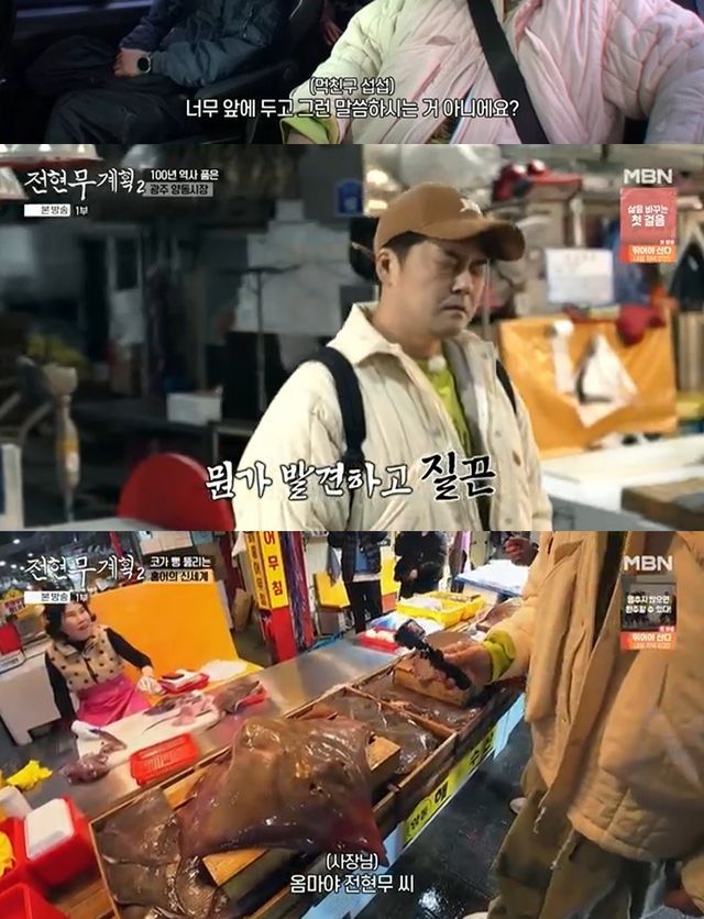 하지만 전현무는 삭히지 않은 홍어를 맛보고 "참기름 좋은 거 쓰셨다"라며 복잡 미묘한 표정을 지으며 삭힌 홍어에 도전을 시작했다.