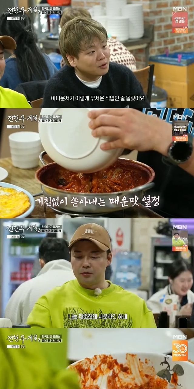 이날 김대호와 전현무는 '매운 맛' 사랑을 드러내며 빨간 맛 돼지찌게 집에 방문했다. 매운 음식에 겁을 낸 곽튜브와 달리 매운 음식에 강한 전현무와 김대호는 만족을 표했다.